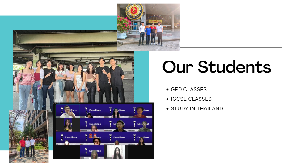 Beyond GED education, WIG Institute bridges Myanmar’s students to global opportunities. We provide end-to-end study abroad support, including university admissions, scholarship guidance, visa assistance, and cultural orientation, partnering with international institutions to align students with their academic aspirations. Driven by Mr. Thet Htoo Naing’s vision of accessibility and empowerment, our team blends academic rigor with mentorship and career counselling, fostering holistic development for lifelong achievement. At WIG Institute, we’re not just educating minds – we’re nurturing future leaders and connecting Myanmar’s youth to the world.